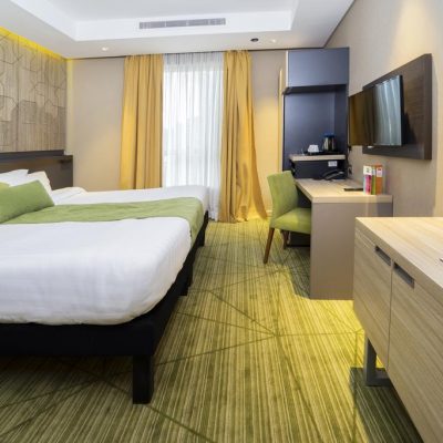 Tesisin 286 odasını tümünde klima, düz ekran uydu TV, oturma alanı, elektrikli su ısıtıcısı ve buzdolabı bulunmaktadır. Odalar duşlu özel banyoya sahiptir.